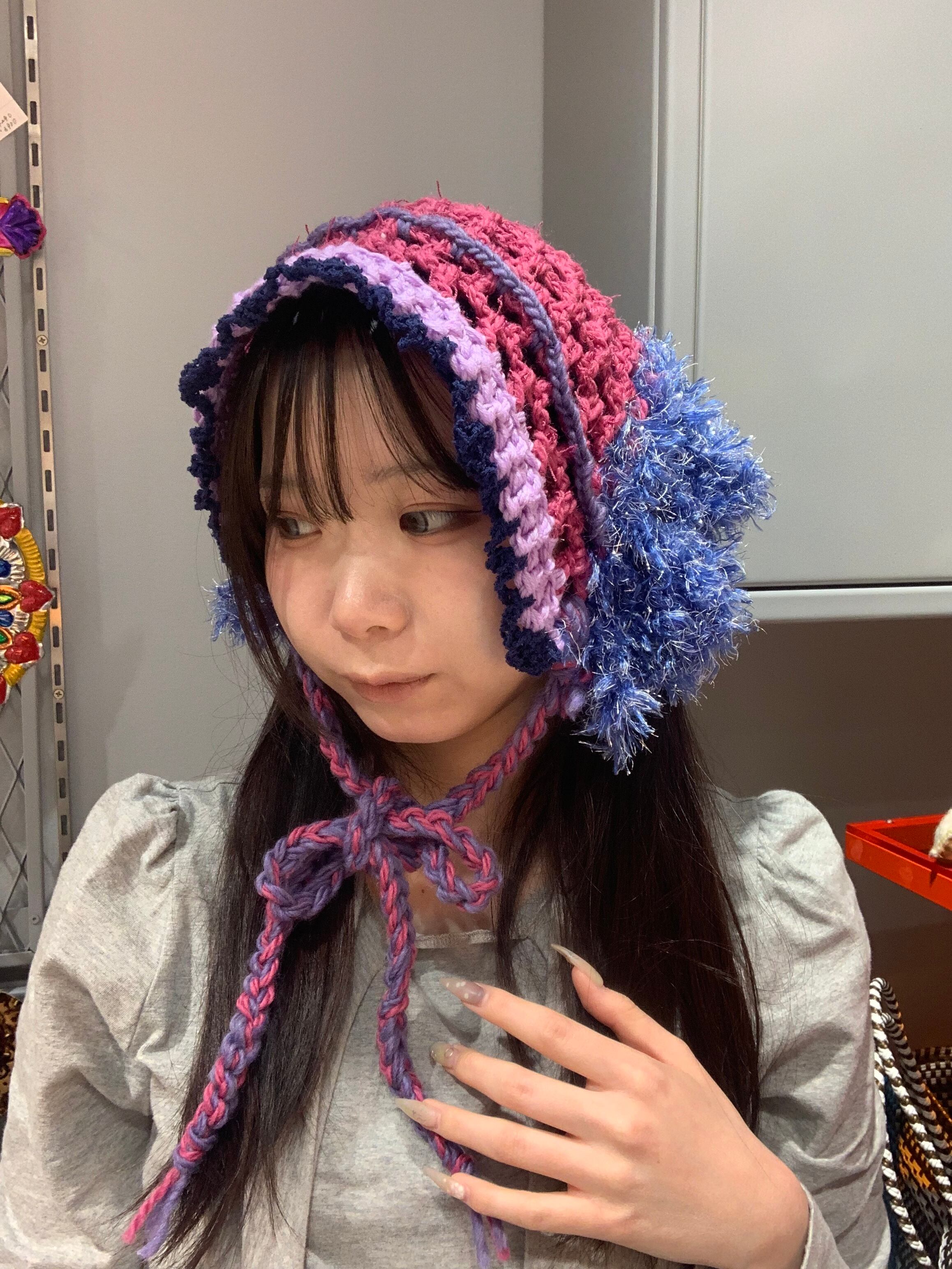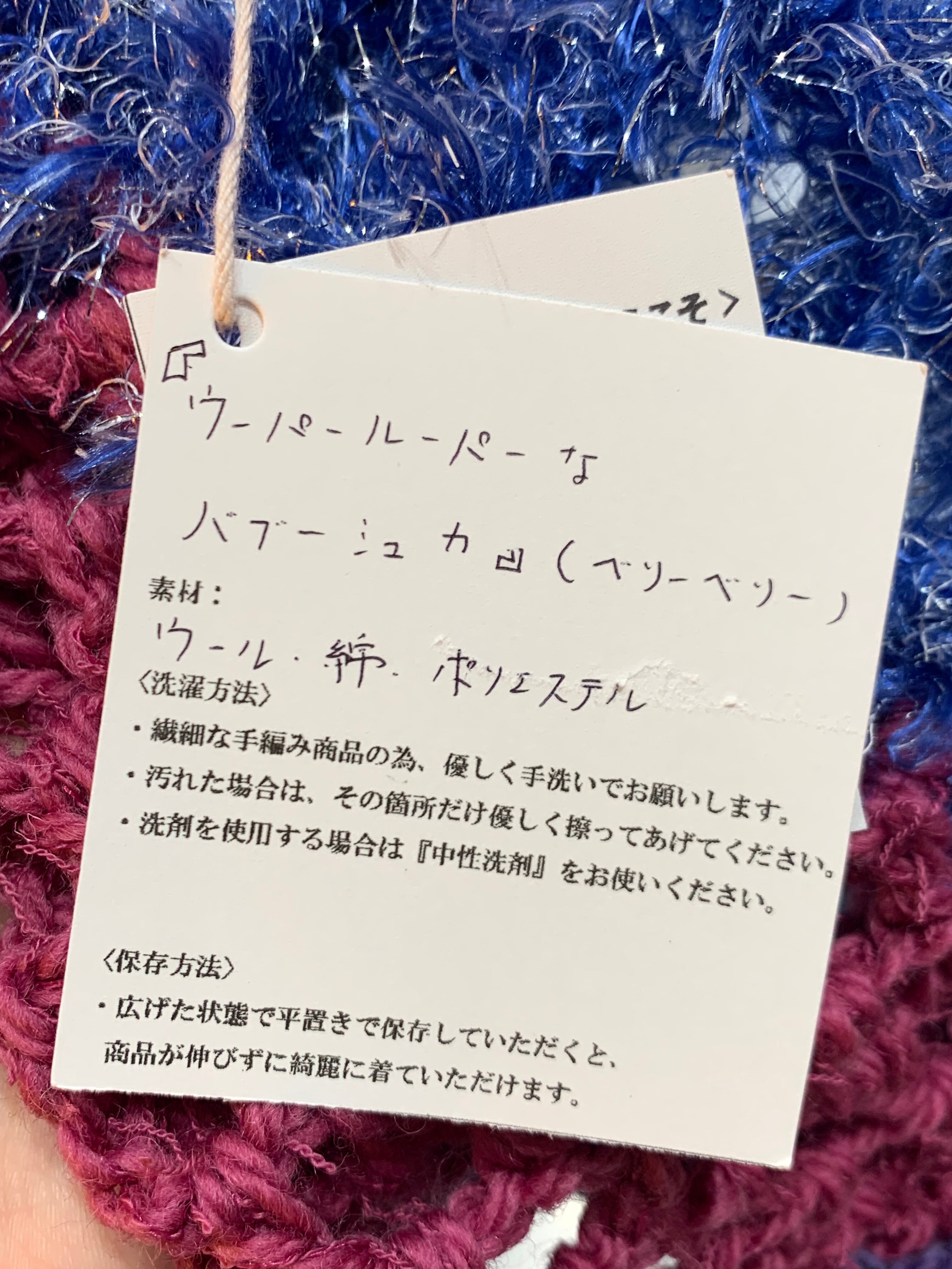 「小人さんみたいなバブーシュカ」 ベリーベリー 〈素材〉 ウール・綿・ポリエステル 〈洗濯方法〉 繊細な手編み商品の為、優しく手洗いでお願いします。 汚れた場合は、その箇所だけ優しく擦ってあげてください。 洗剤を使用する場合は中性洗剤をお使いください。