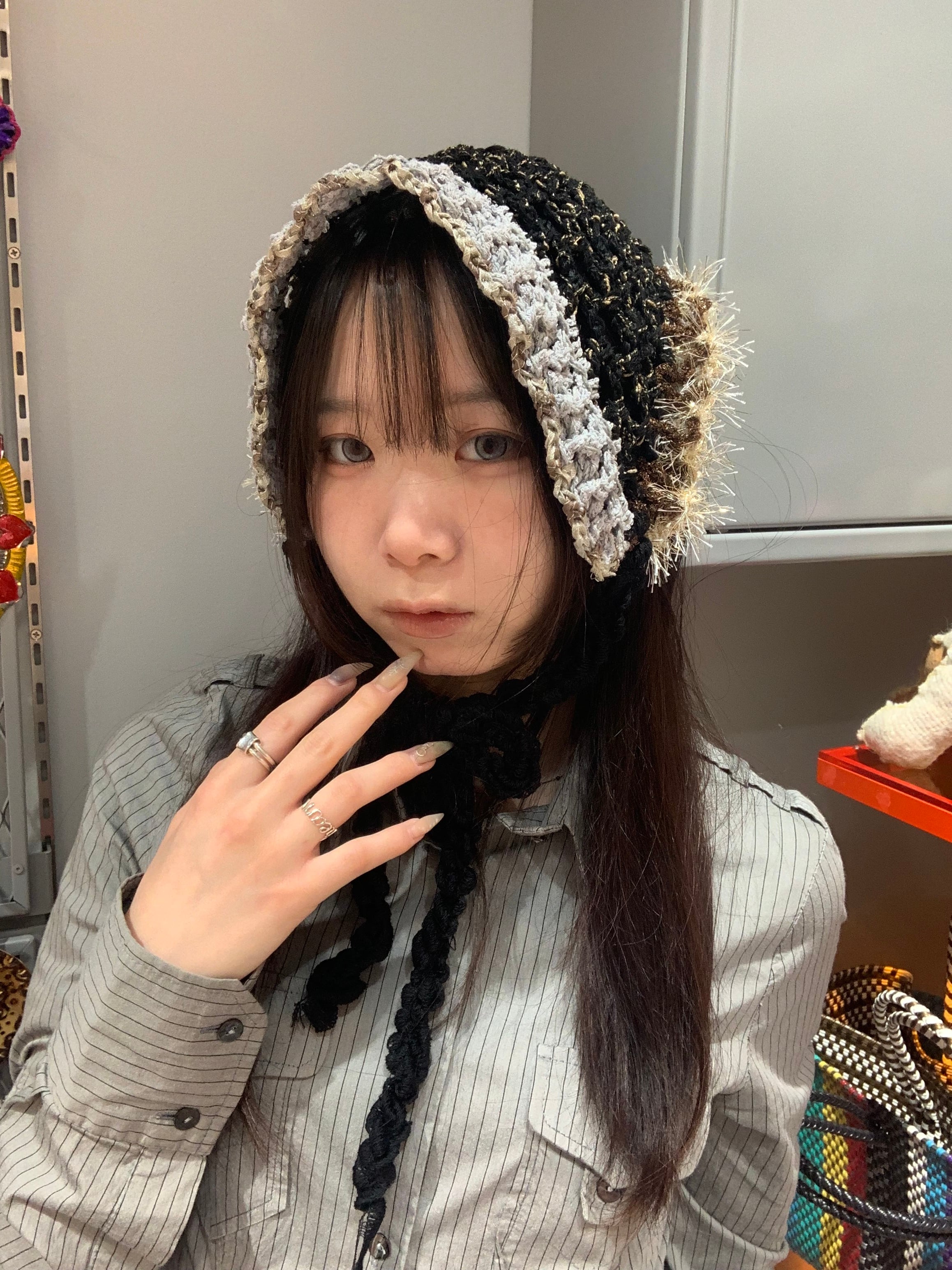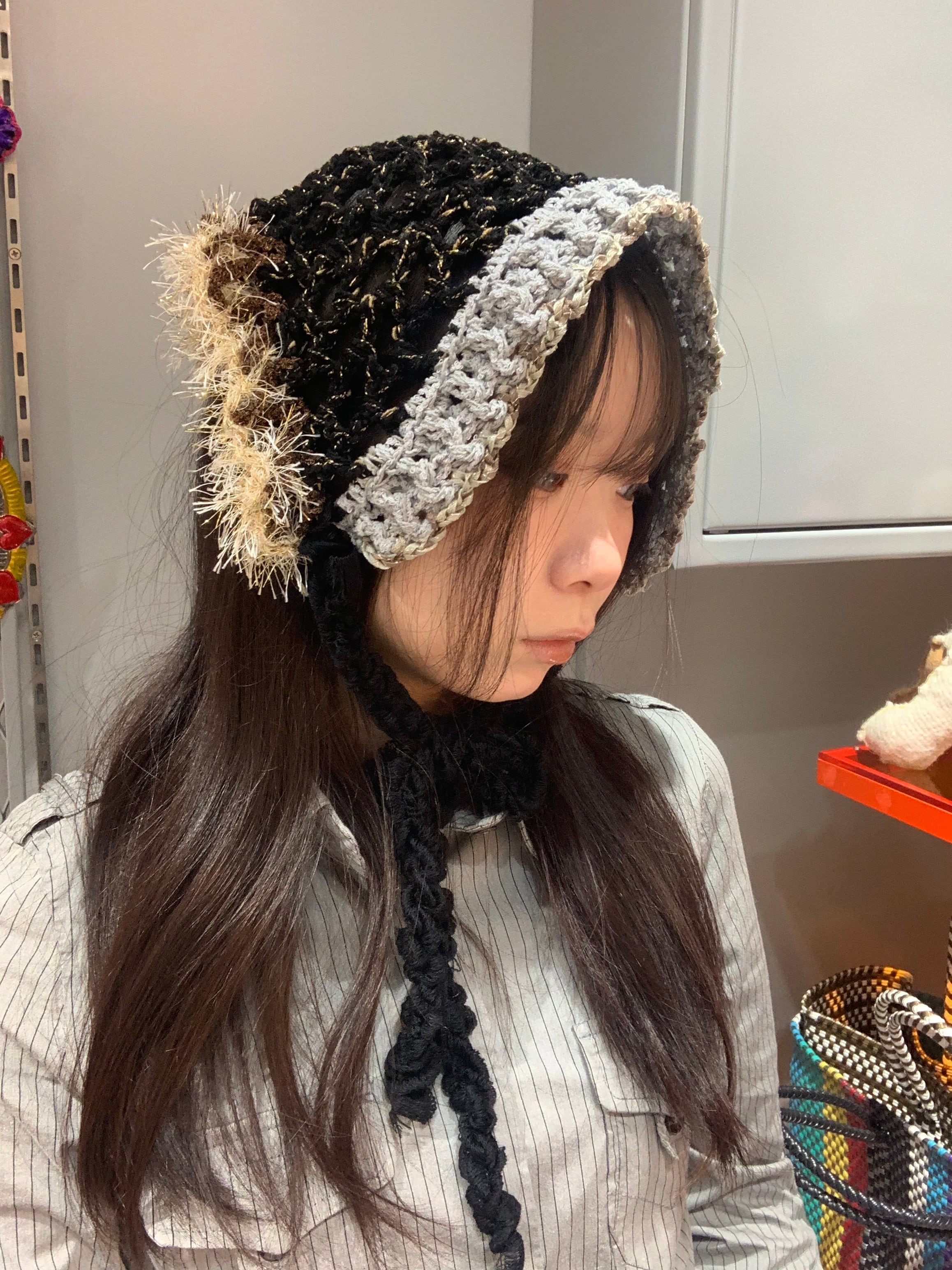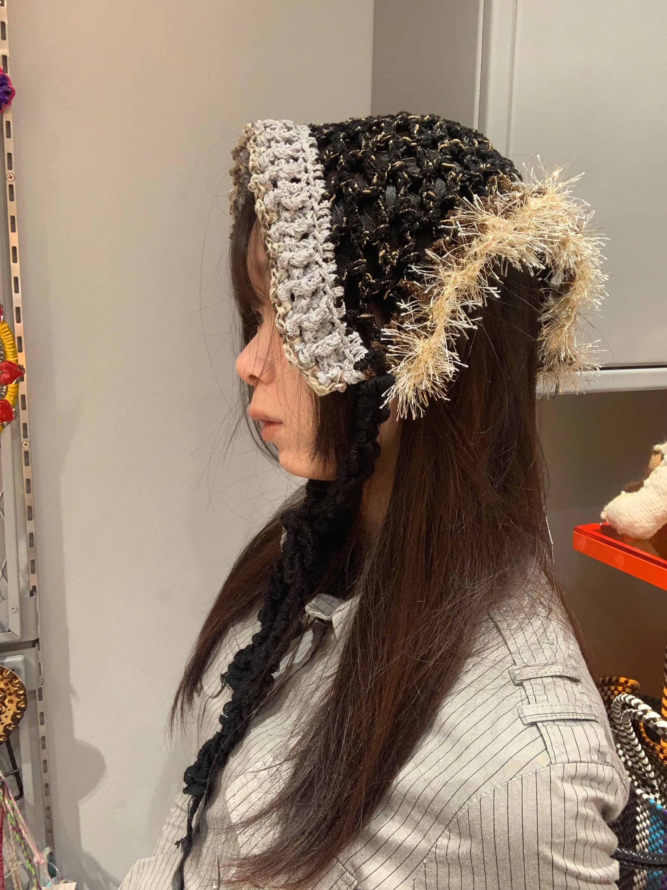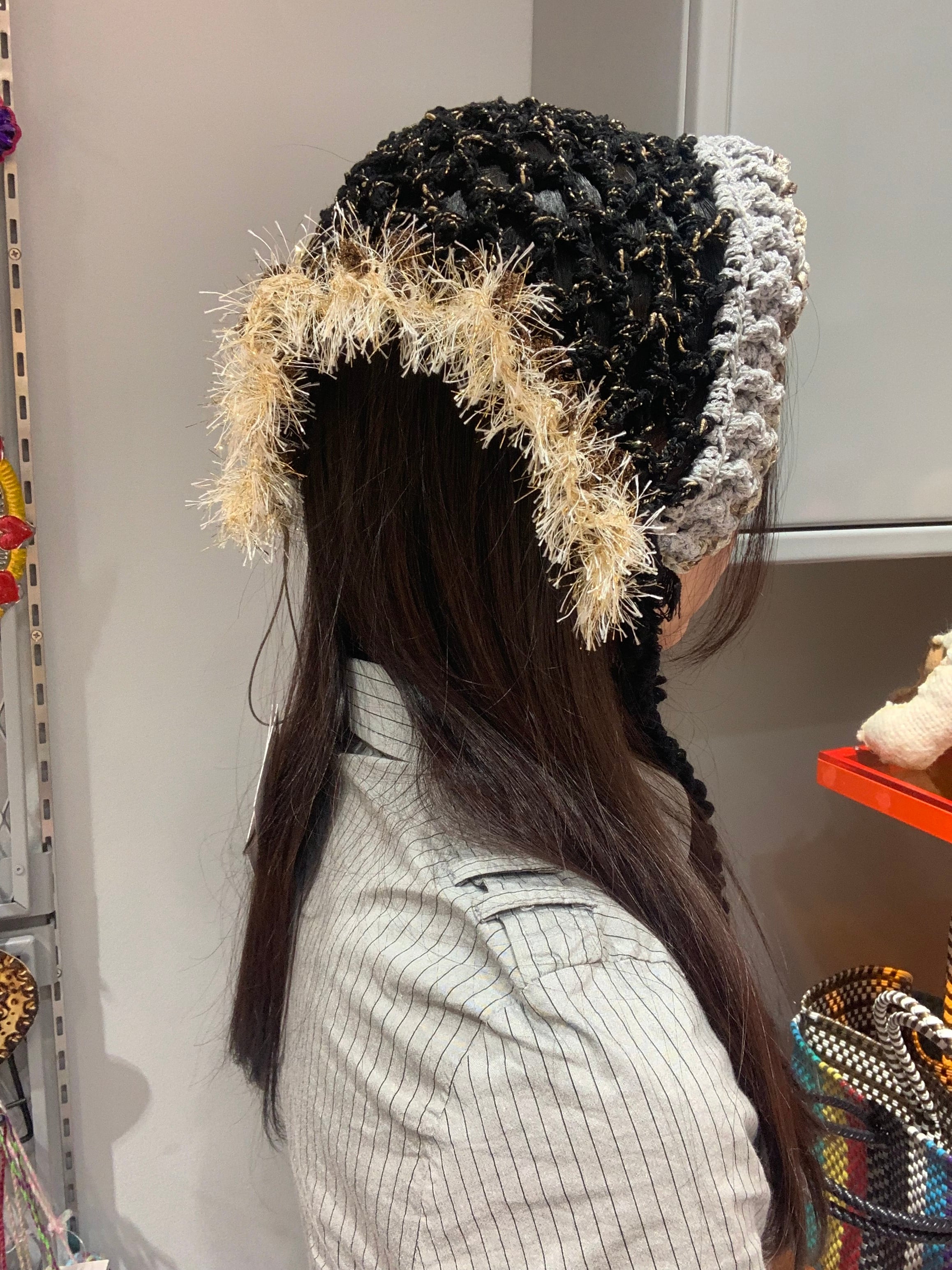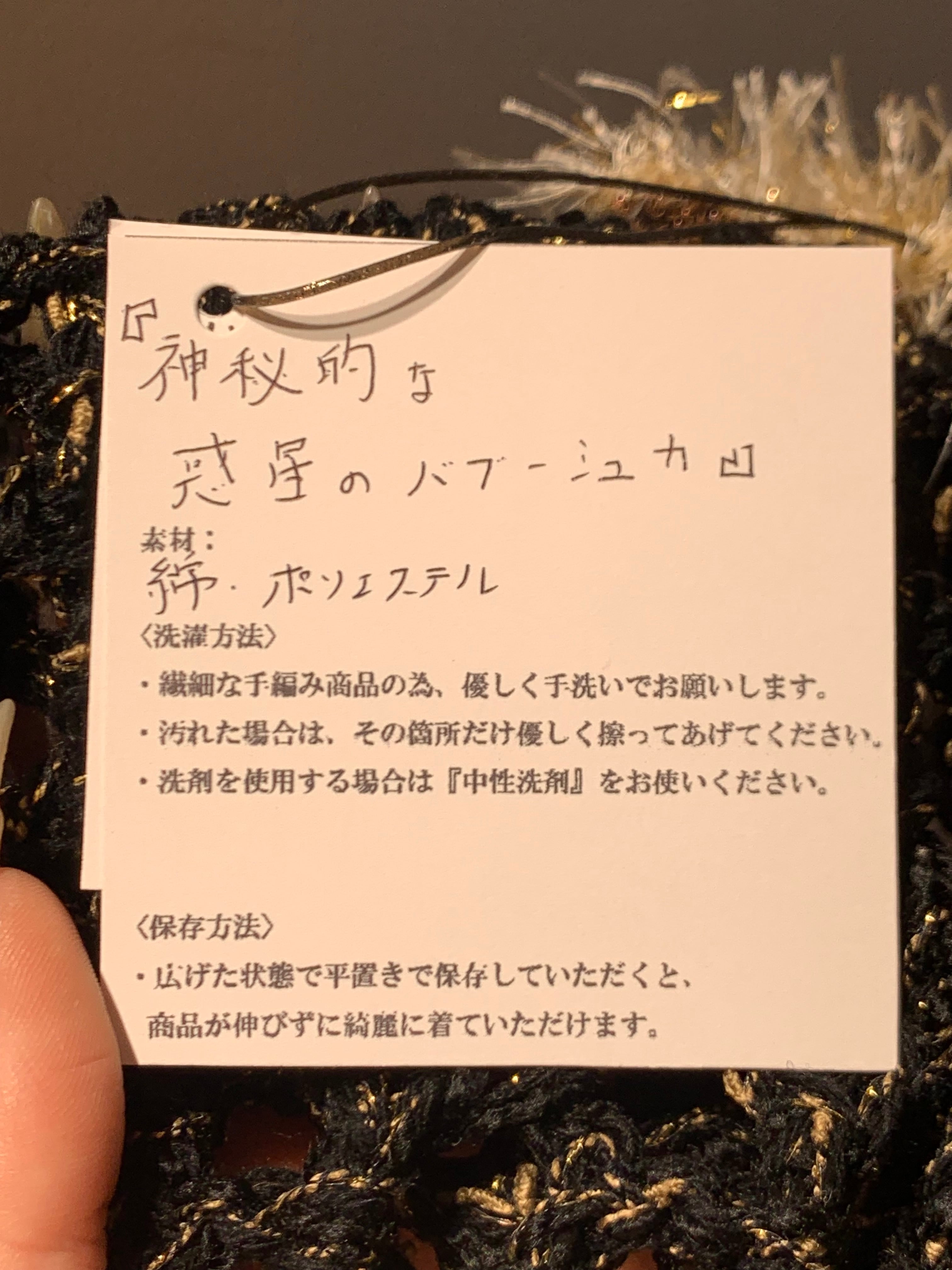 「神秘的な惑星のバブーシュカ」 〈素材〉 ポリエステル・綿 〈洗濯方法〉 繊細な手編み商品の為、優しく手洗いでお願いします。 汚れた場合は、その箇所だけ優しく擦ってあげてください。 洗剤を使用する場合は中性洗剤をお使いください。