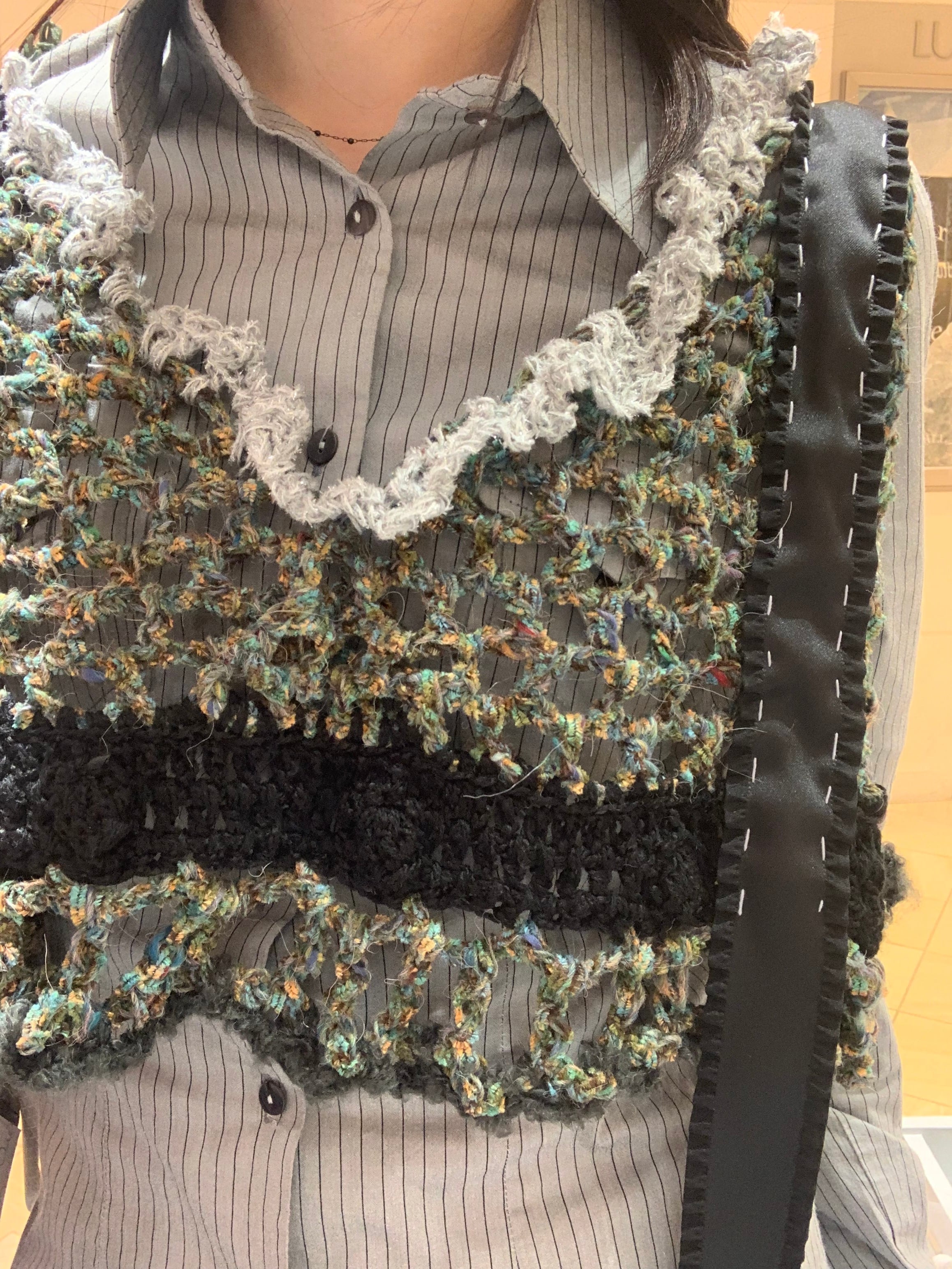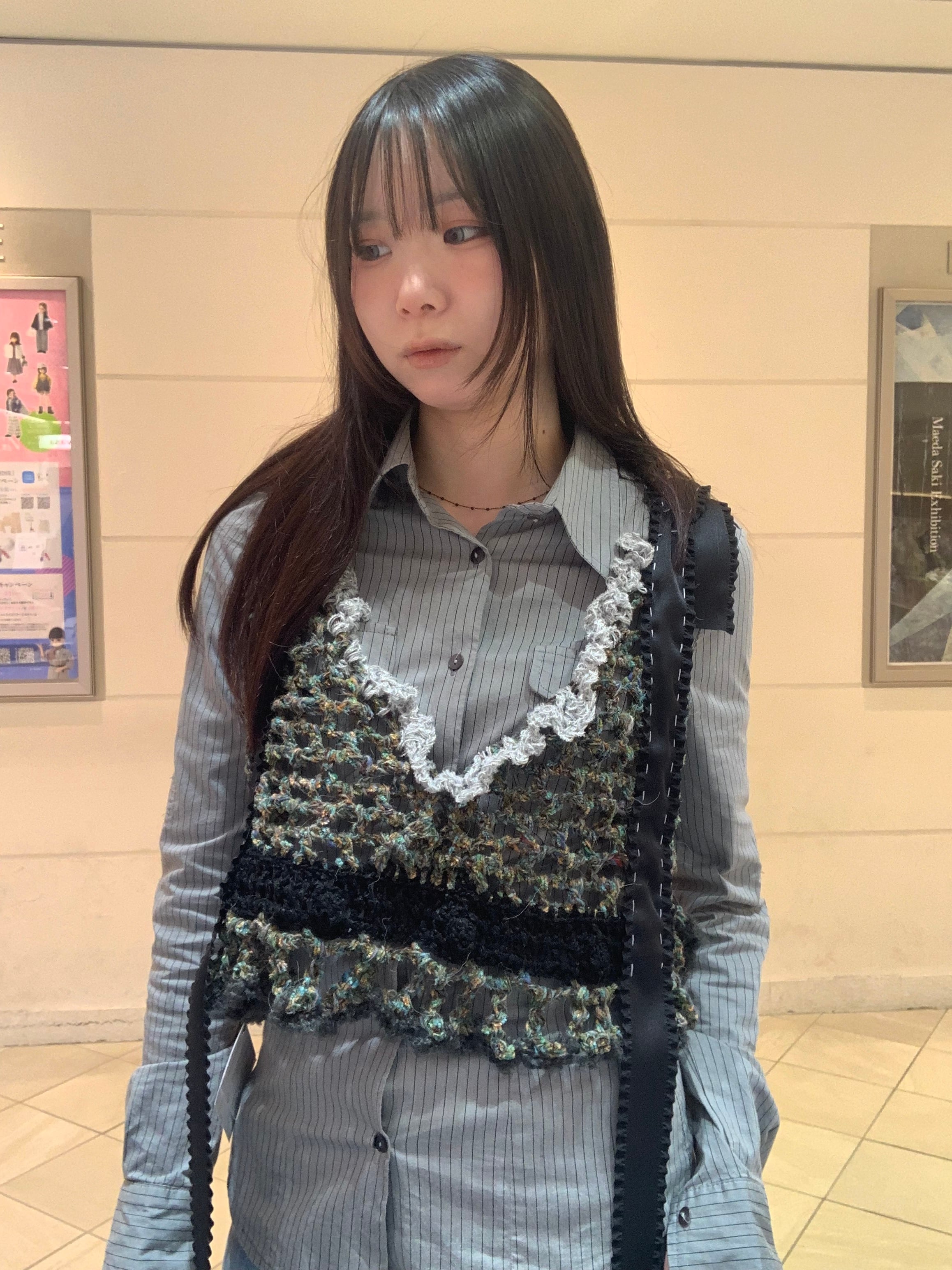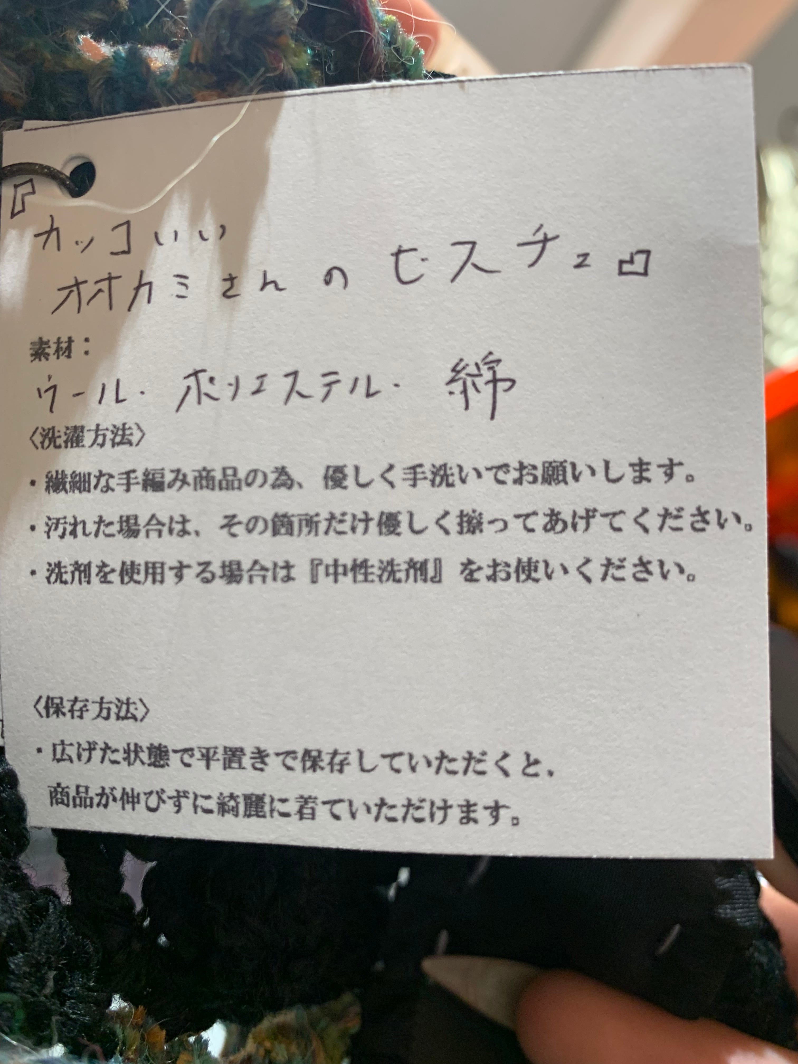 「カッコいいオオカミさんのビスチェ」 〈素材〉 ポリエステル・綿・ウール 〈洗濯方法〉 繊細な手編み商品の為、優しく手洗いでお願いします。 汚れた場合は、その箇所だけ優しく擦ってあげてください。 洗剤を使用する場合は中性洗剤をお使いください。