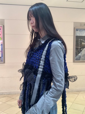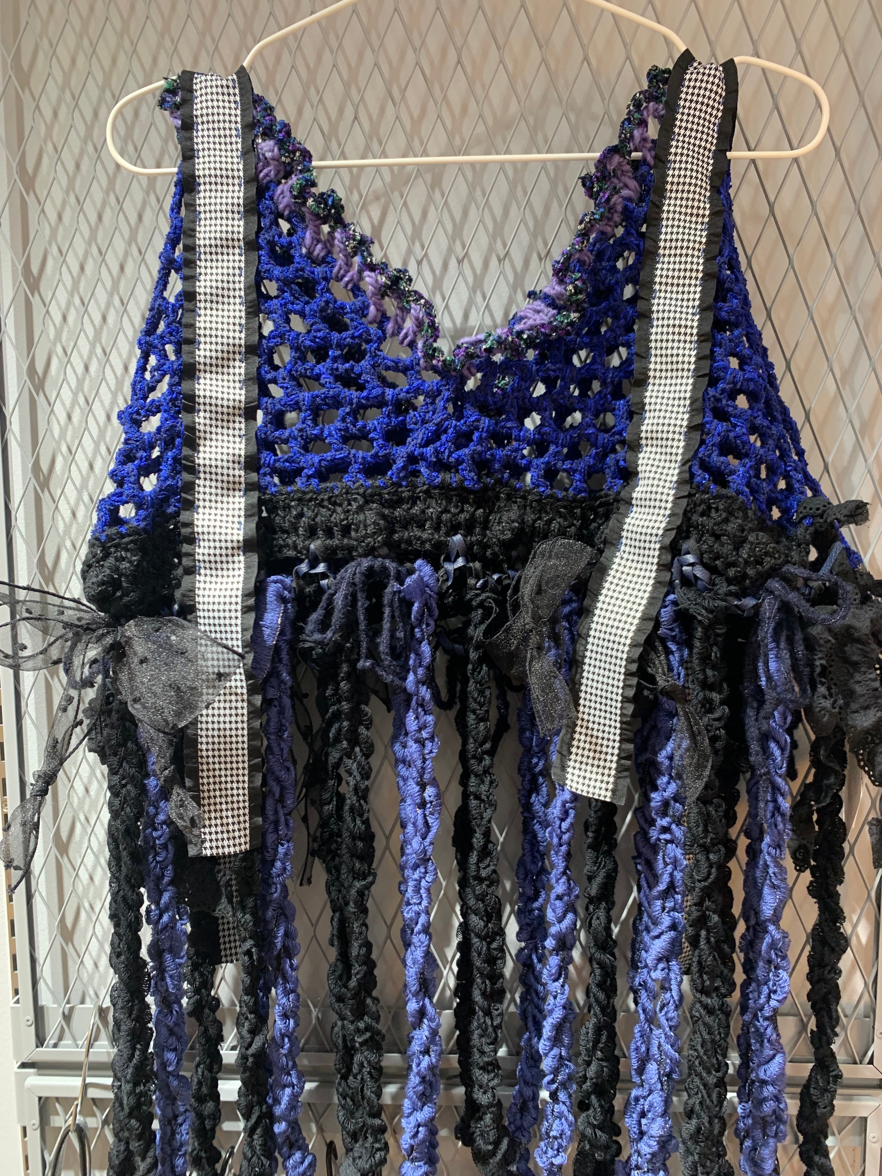「ひらひらくらげさんのビスチェ」 黒猫ちゃん 〈素材〉 綿・ポリエステル・ウール 〈洗濯方法〉 繊細な手編み商品の為、優しく手洗いでお願いします。 汚れた場合は、その箇所だけ優しく擦ってあげてください。 洗剤を使用する場合は中性洗剤をお使いください。