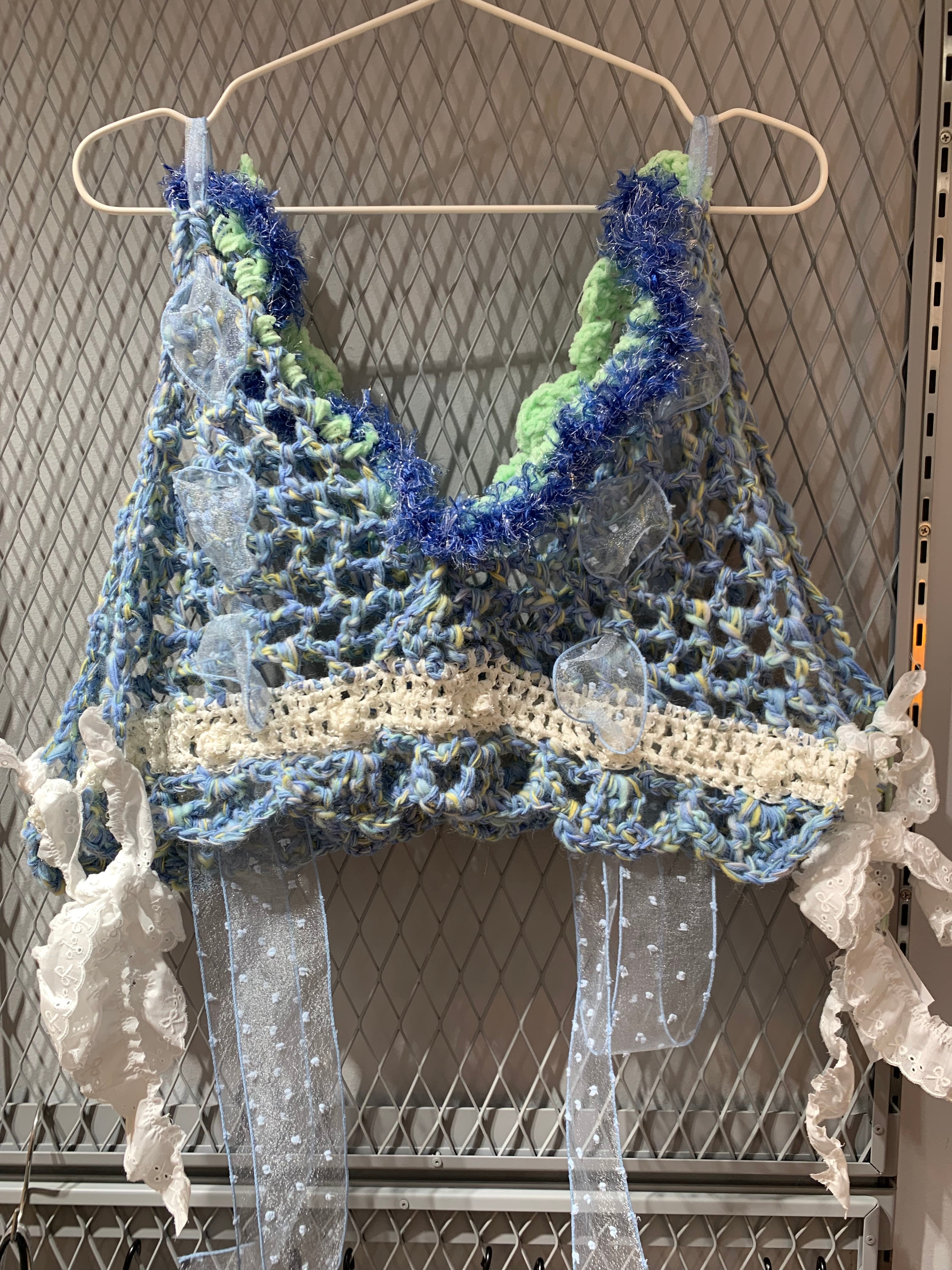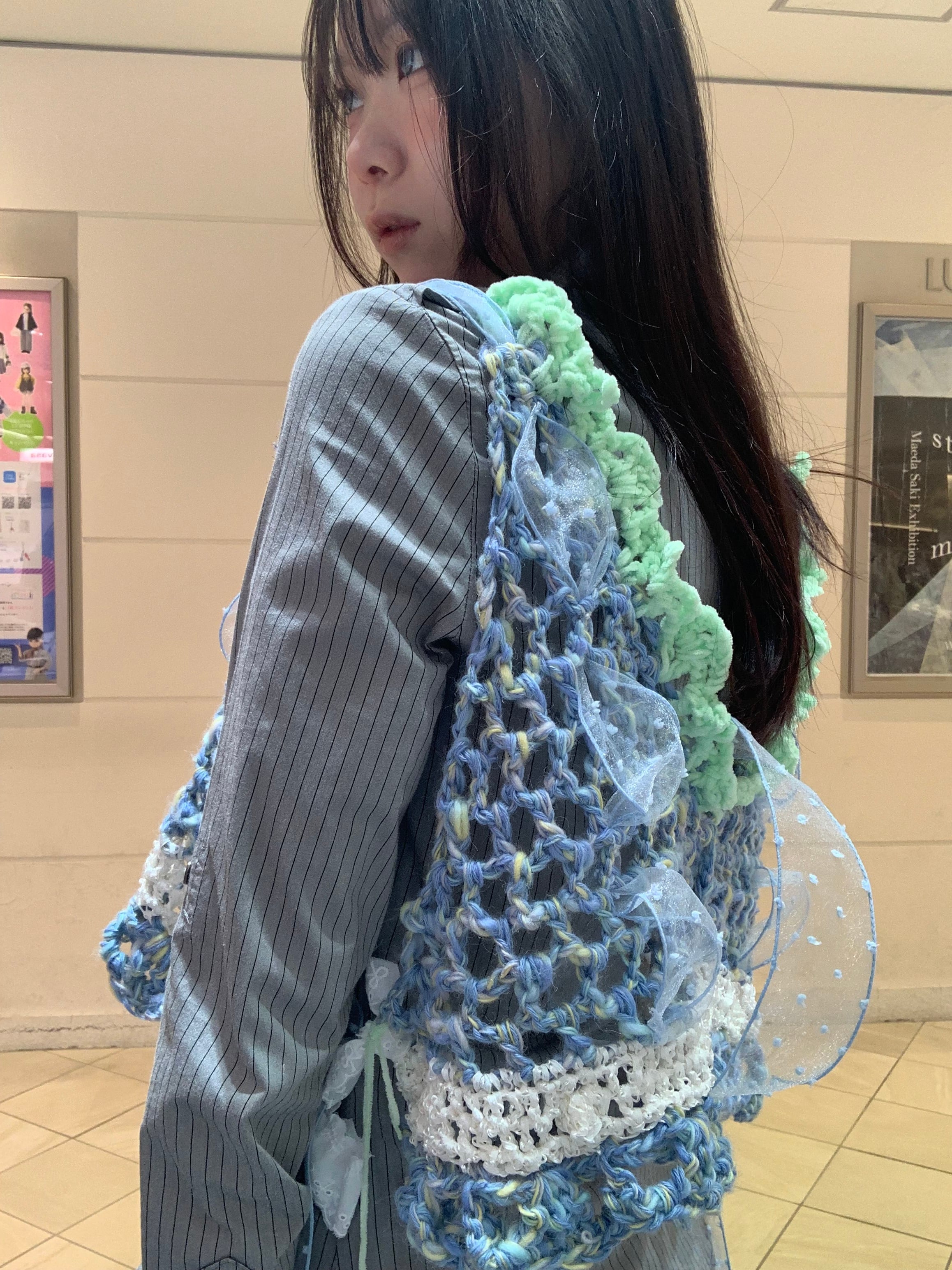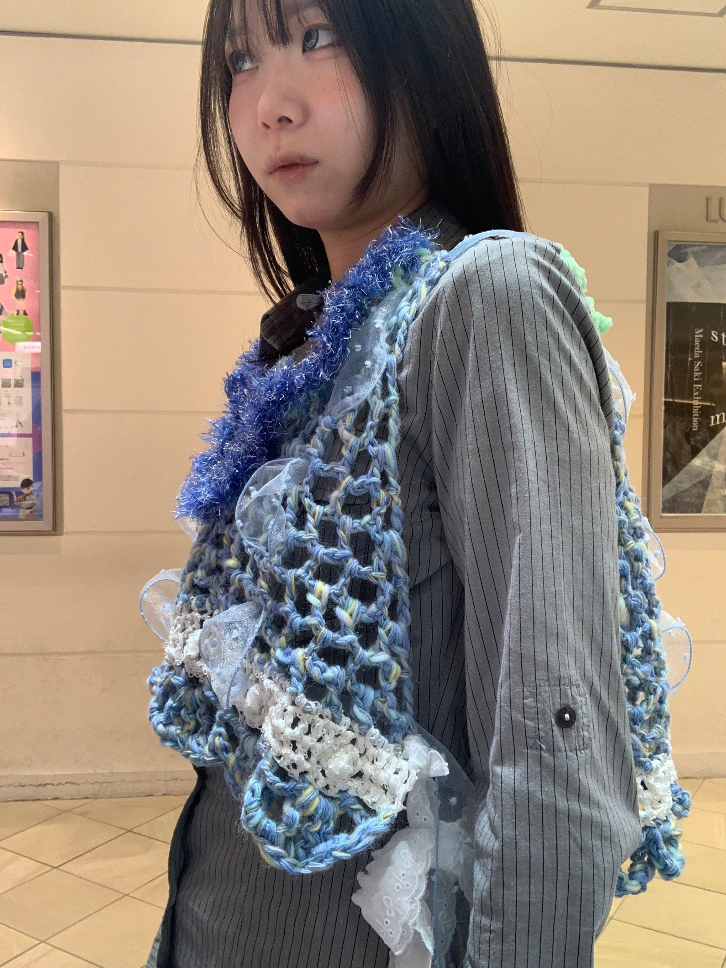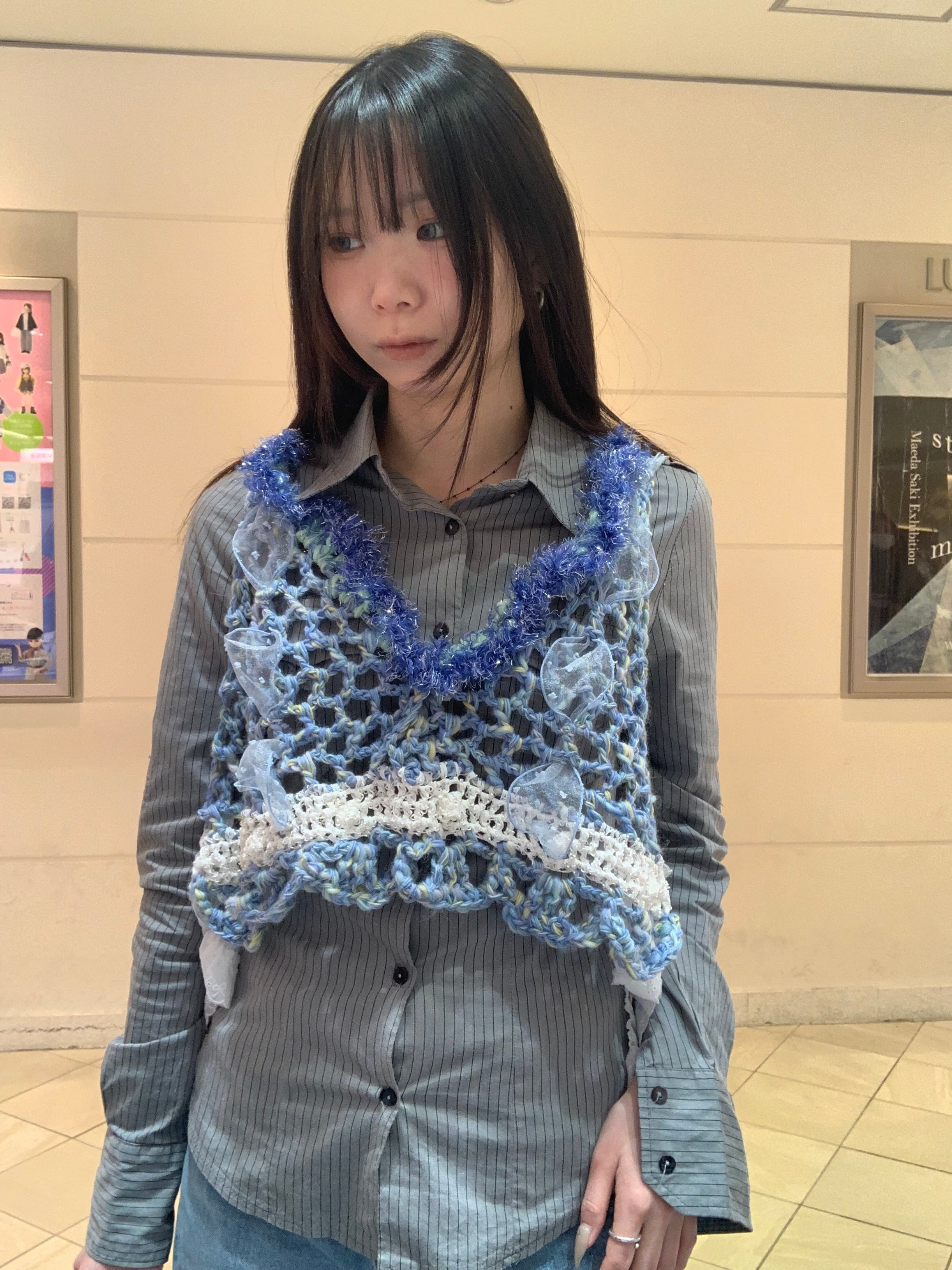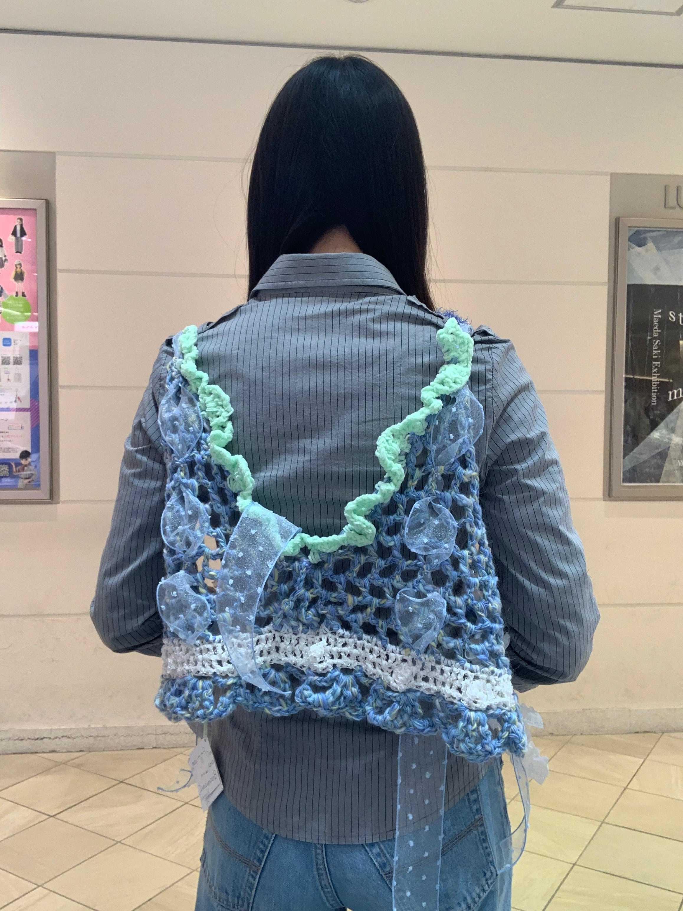 「キラキラ輝く氷のビスチェ」 〈素材〉 ウール・ポリエステル・ナイロン 〈洗濯方法〉 繊細な手編み商品の為、優しく手洗いでお願いします。 汚れた場合は、その箇所だけ優しく擦ってあげてください。 洗剤を使用する場合は中性洗剤をお使いください。