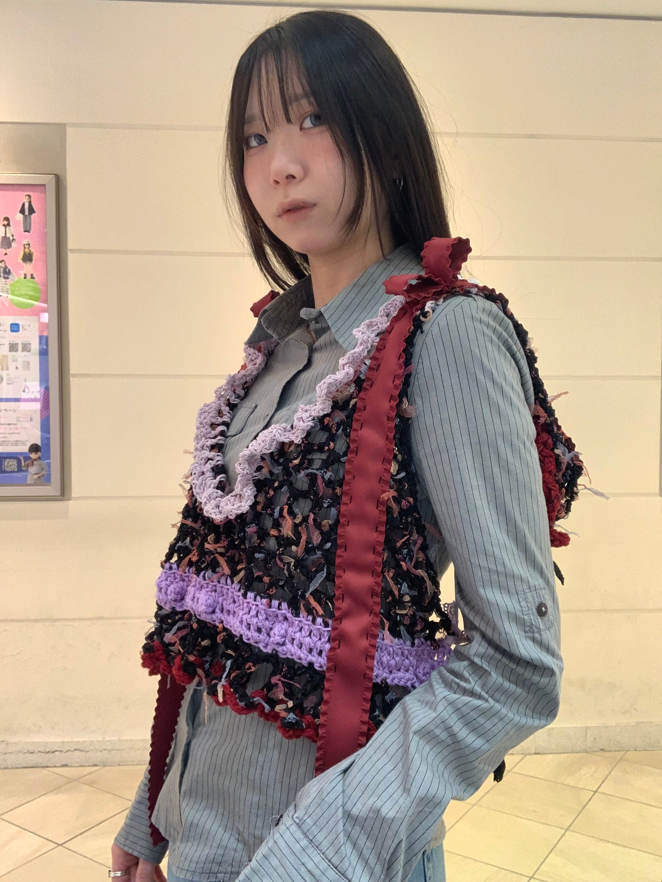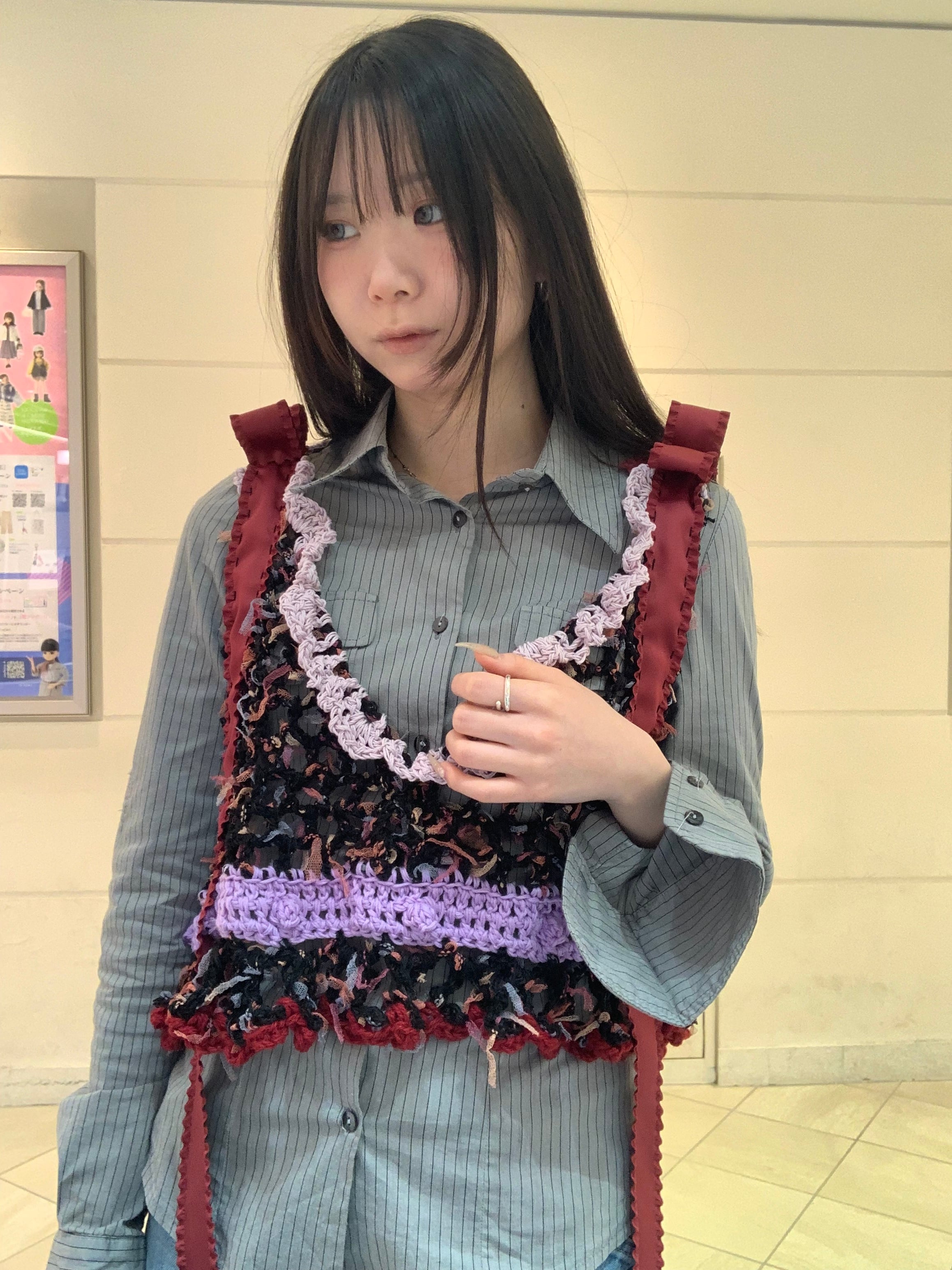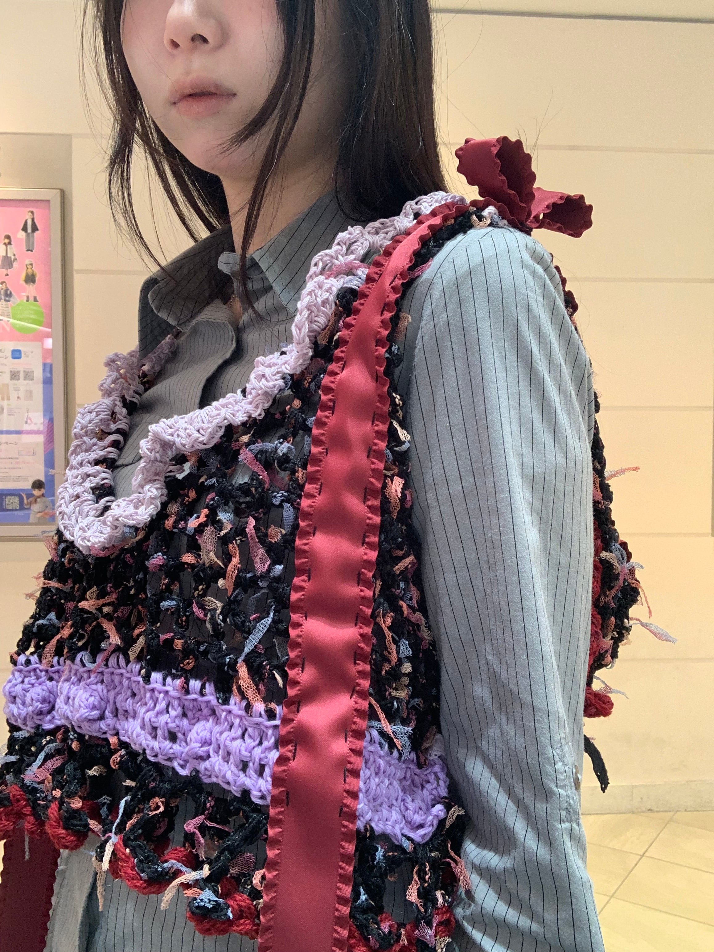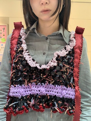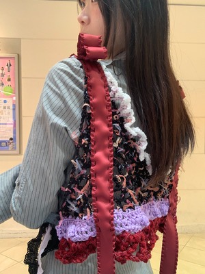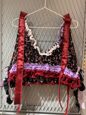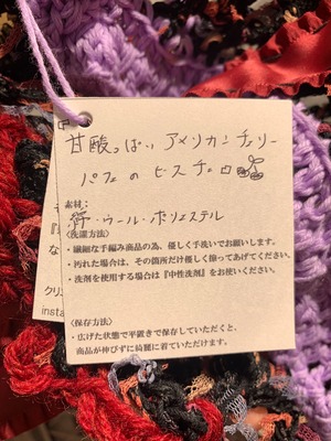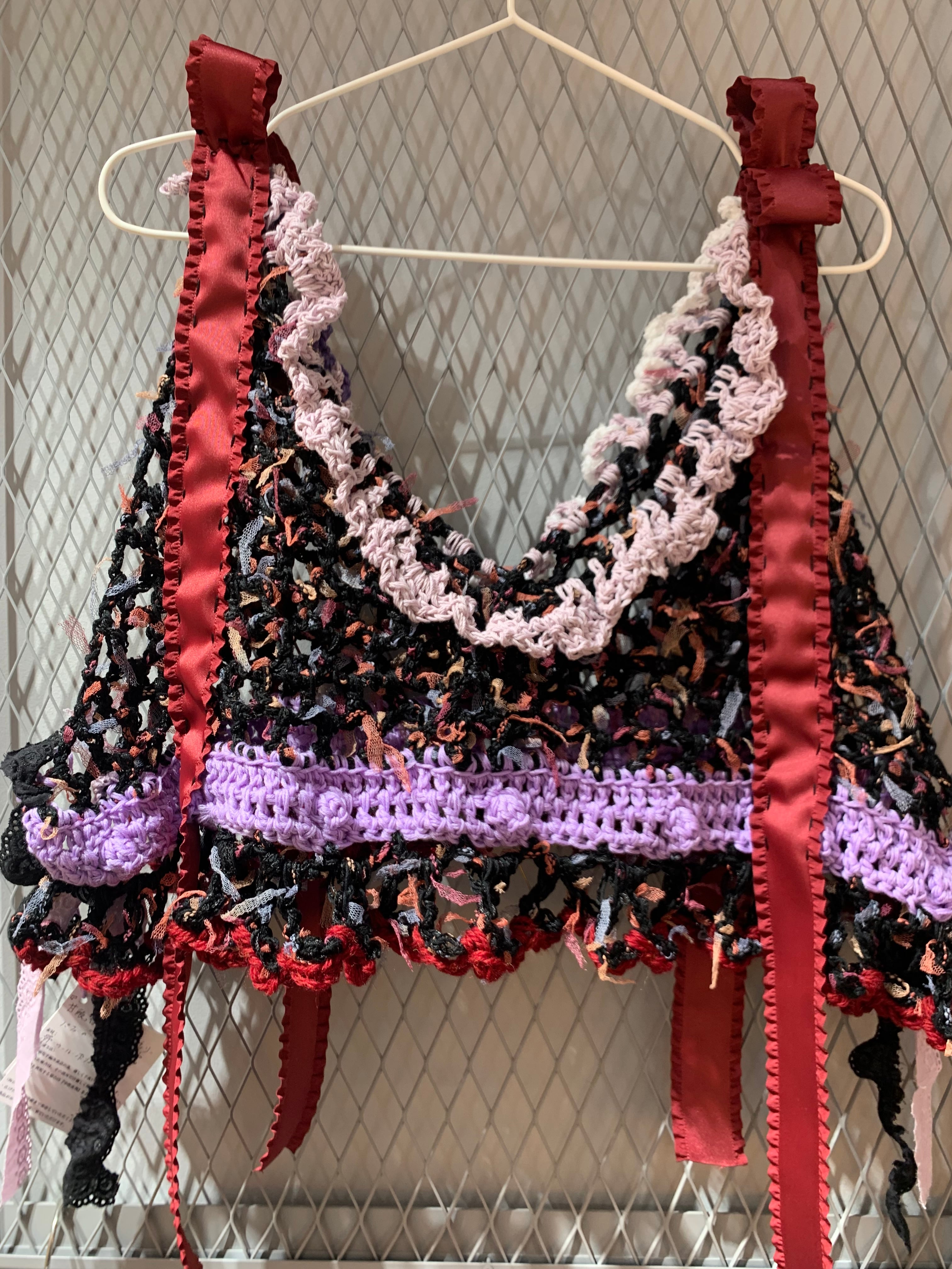 「甘酸っぱいアメリカンチェリーパフェのビスチェビスチェ」 〈素材〉 綿・ウール・ポリエステル 〈洗濯方法〉 繊細な手編み商品の為、優しく手洗いでお願いします。 汚れた場合は、その箇所だけ優しく擦ってあげてください。 洗剤を使用する場合は中性洗剤をお使いください。