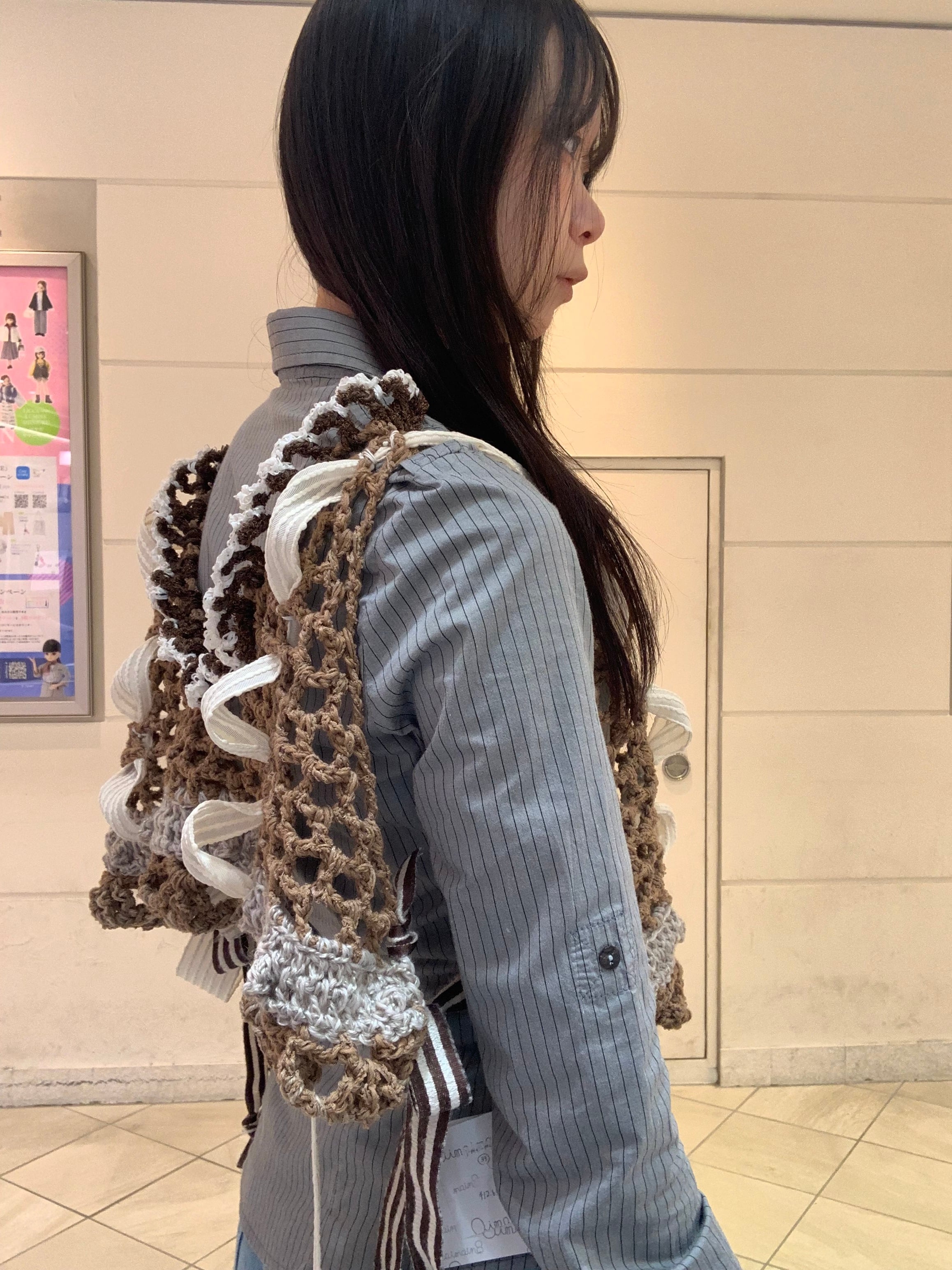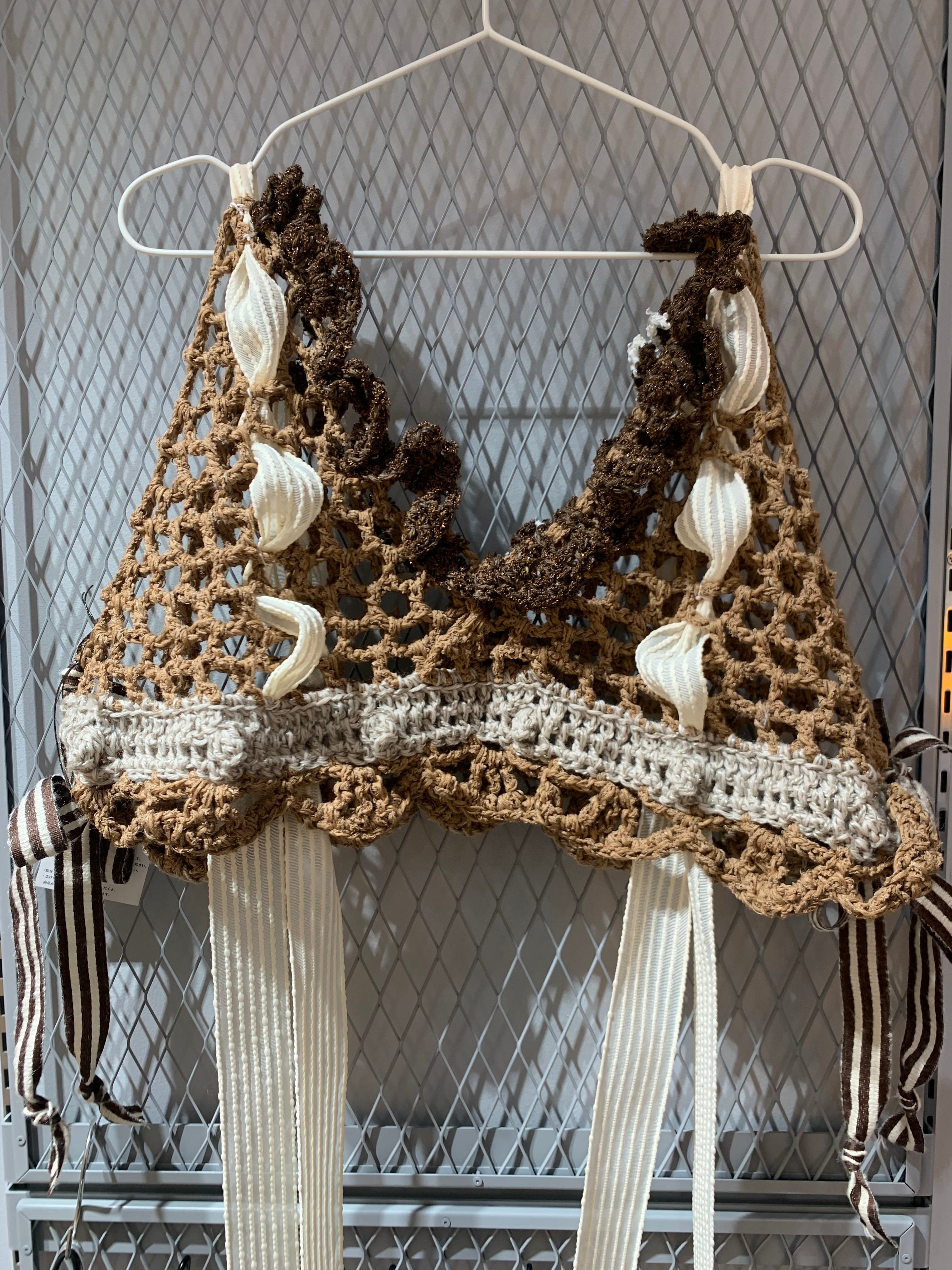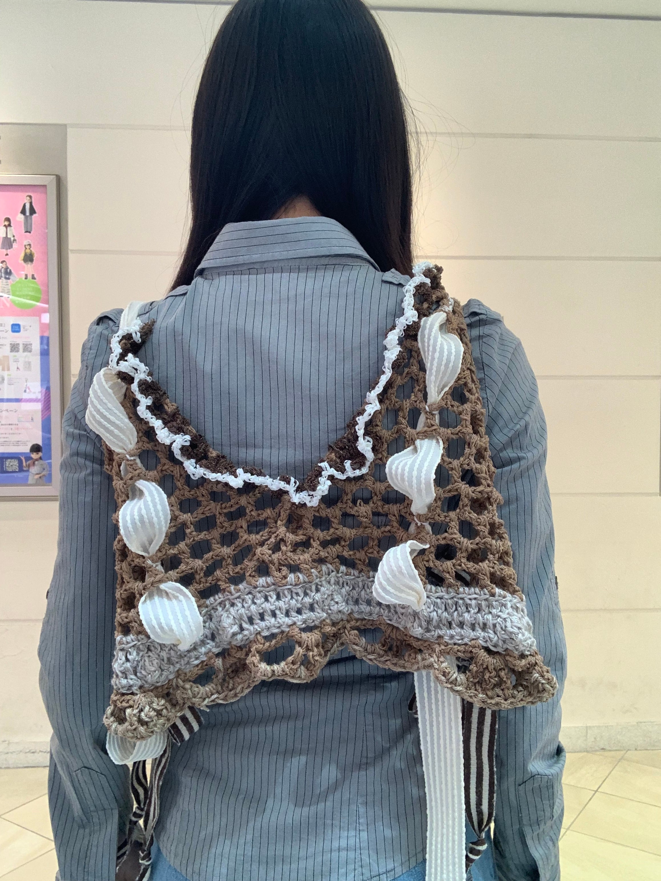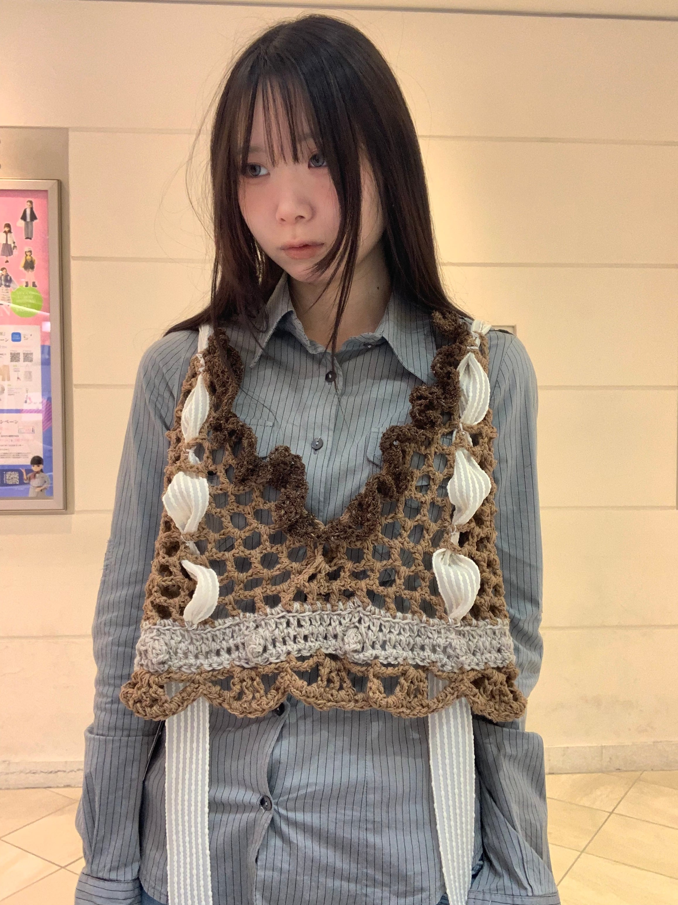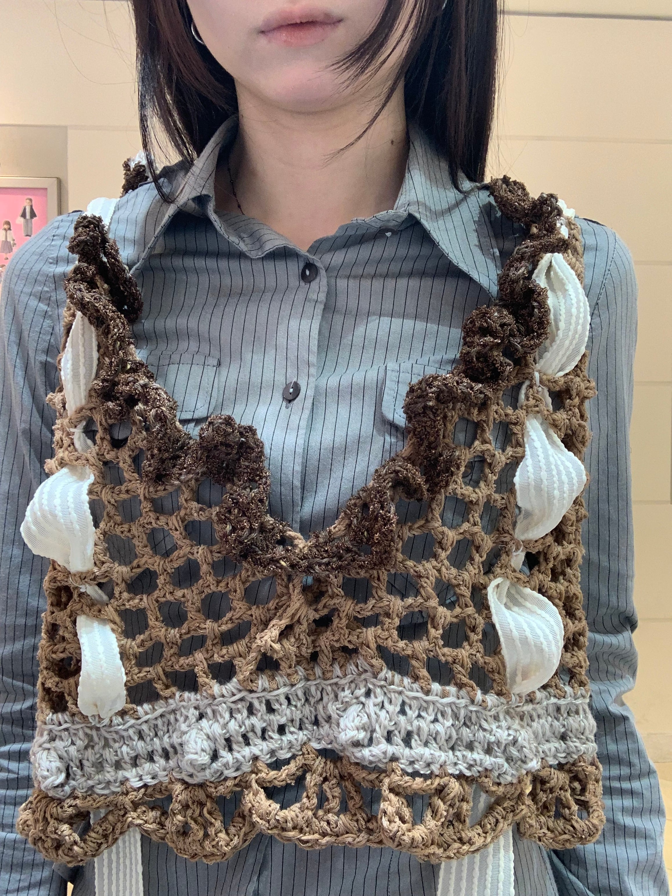 「ほろ苦いモカショートケーキのビスチェ」 〈素材〉 綿・ポリエステル・ナイロン 〈洗濯方法〉 繊細な手編み商品の為、優しく手洗いでお願いします。 汚れた場合は、その箇所だけ優しく擦ってあげてください。 洗剤を使用する場合は中性洗剤をお使いください。