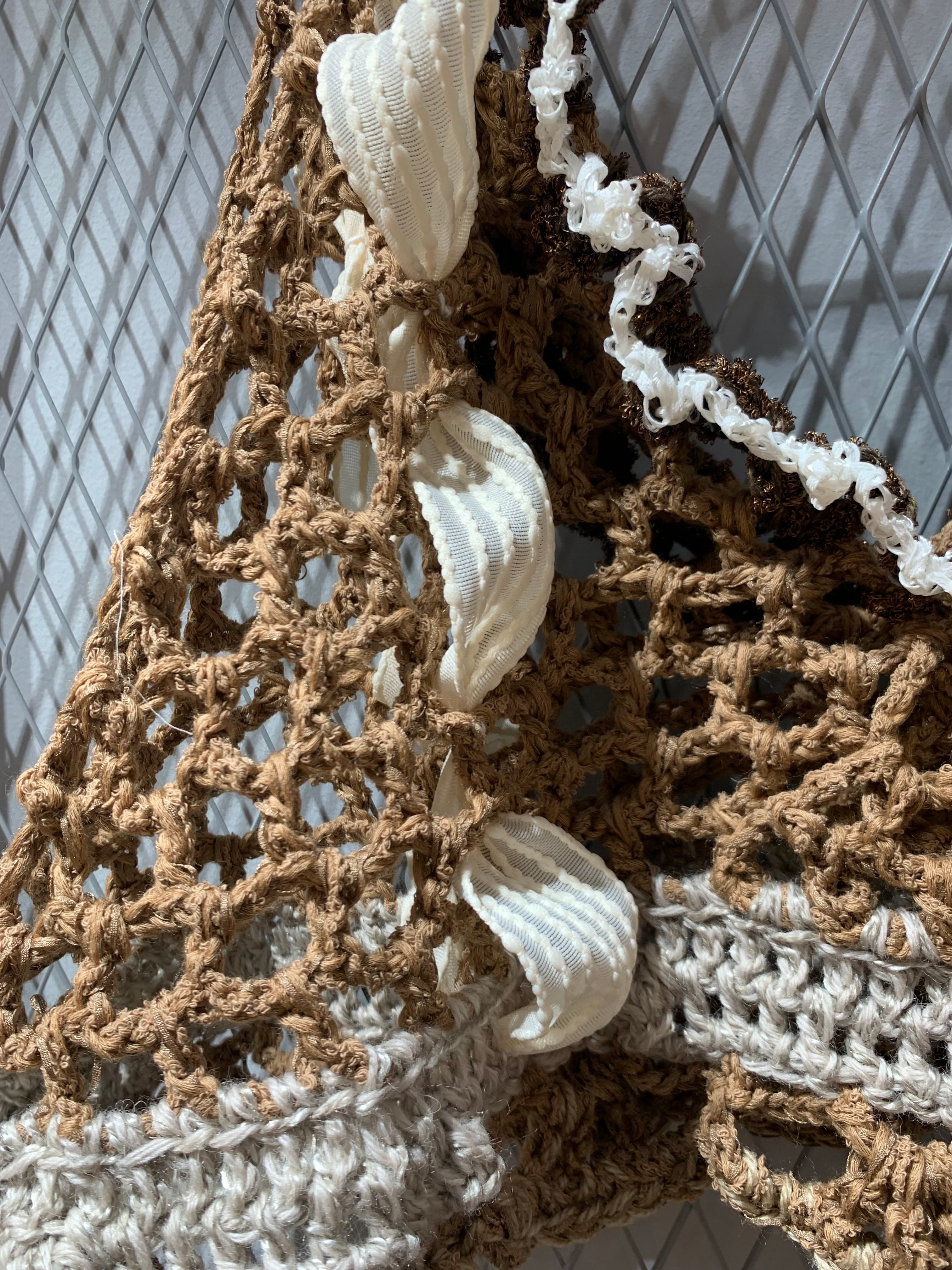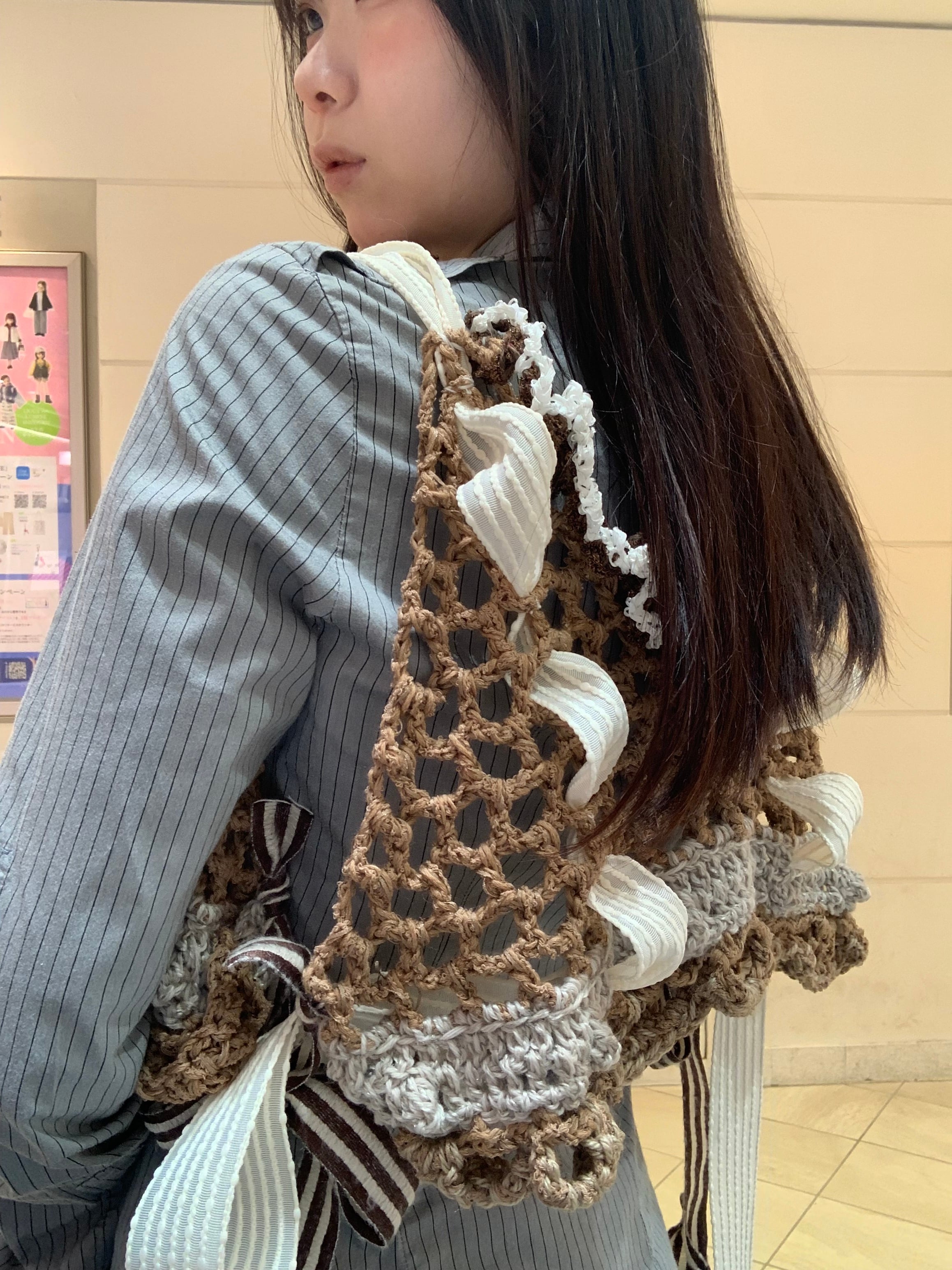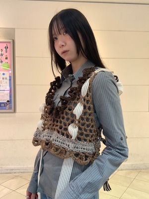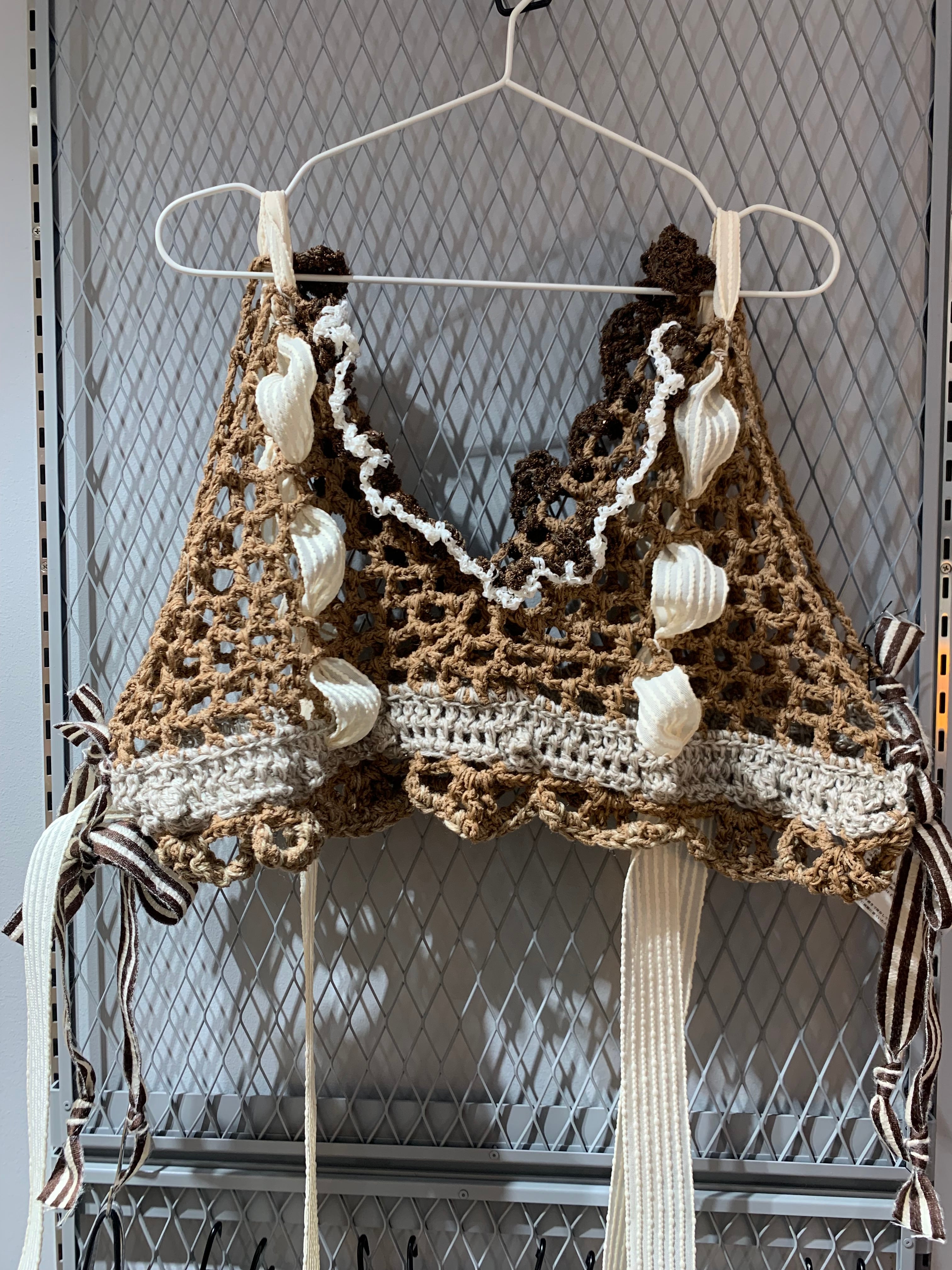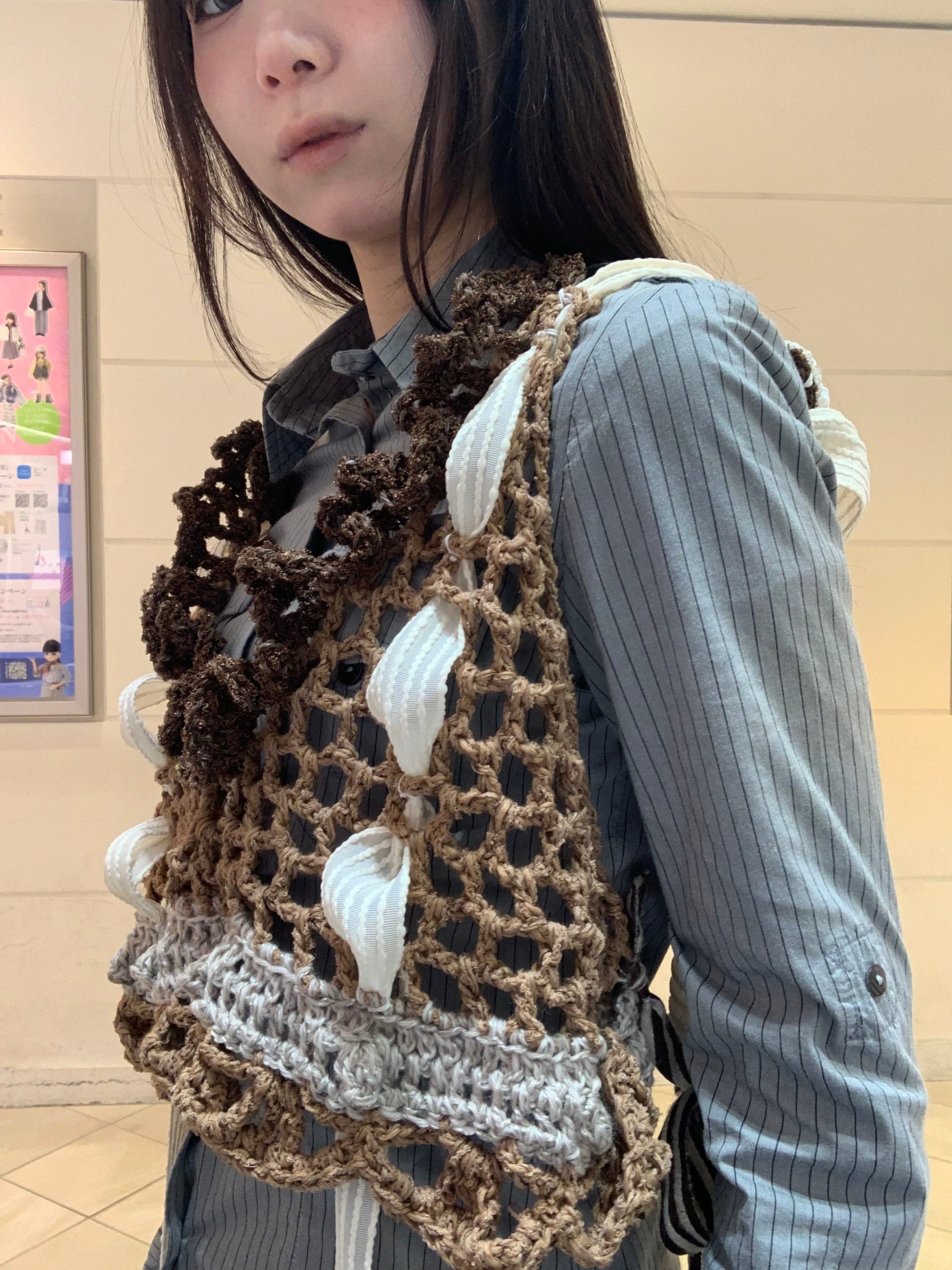 「ほろ苦いモカショートケーキのビスチェ」 〈素材〉 綿・ポリエステル・ナイロン 〈洗濯方法〉 繊細な手編み商品の為、優しく手洗いでお願いします。 汚れた場合は、その箇所だけ優しく擦ってあげてください。 洗剤を使用する場合は中性洗剤をお使いください。