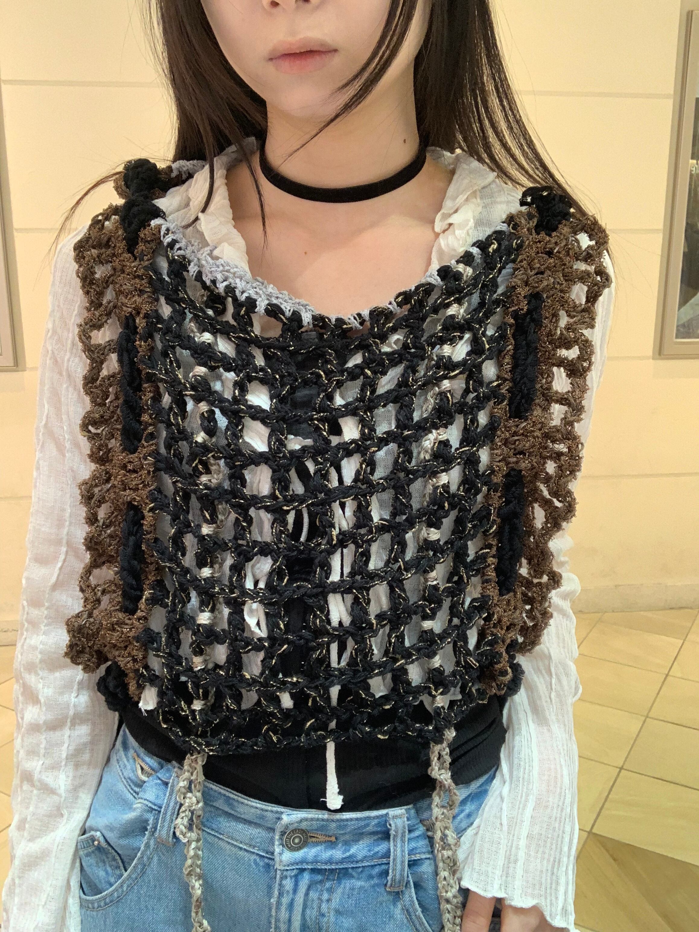 「ちょこっとビスチェ」 惑星 〈素材〉 綿・ポリエステル・ウール 〈洗濯方法〉 繊細な手編み商品の為、優しく手洗いでお願いします。 汚れた場合は、その箇所だけ優しく擦ってあげてください。 洗剤を使用する場合は中性洗剤をお使いください。