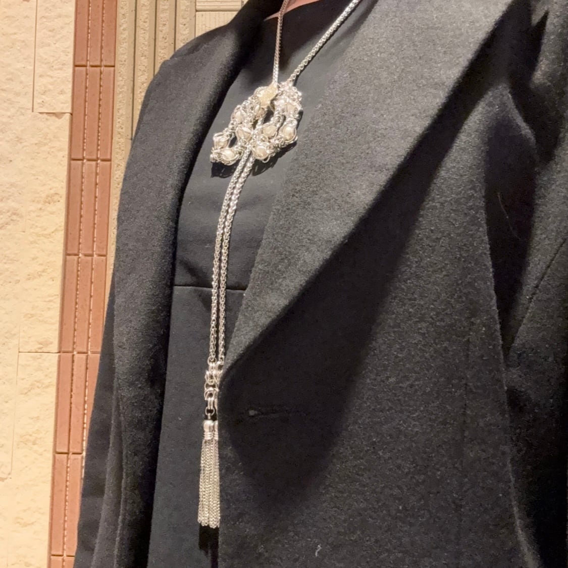 ファンタジックなパールリボンネックレス