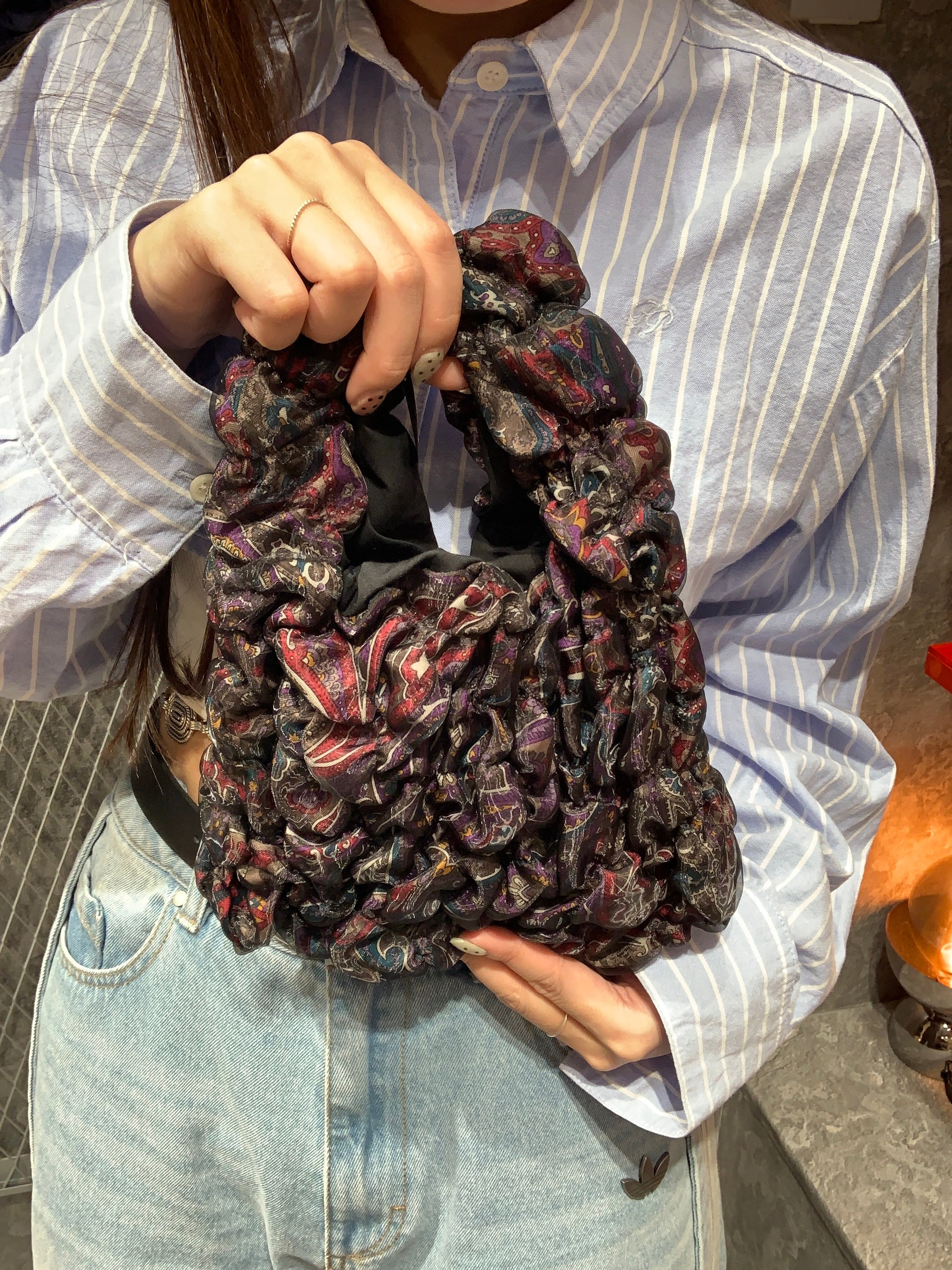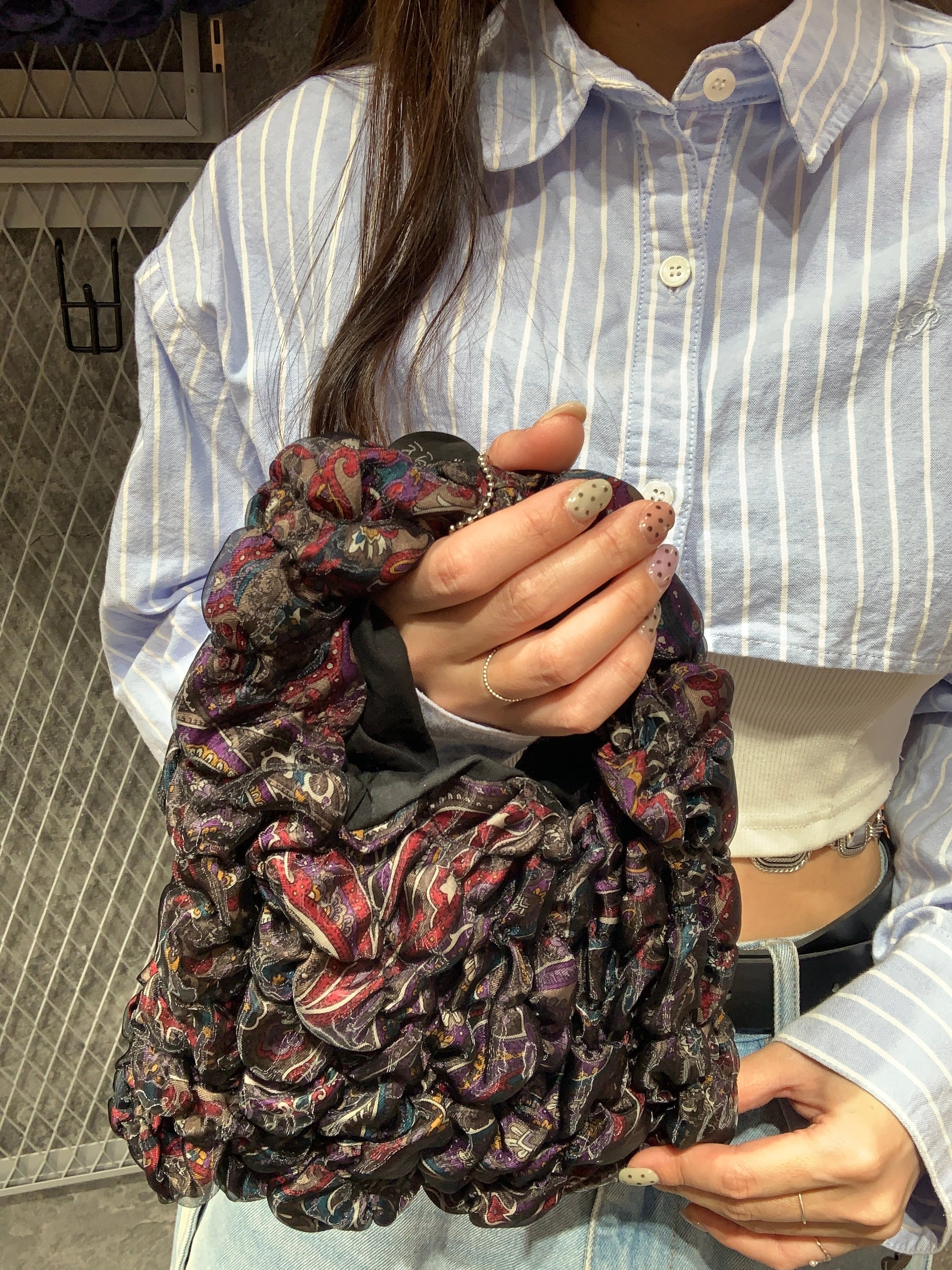 シャーリングゴムによりシルエットを作り出している為、洗濯やアイロンをすると風合いが変わる可能性があります。