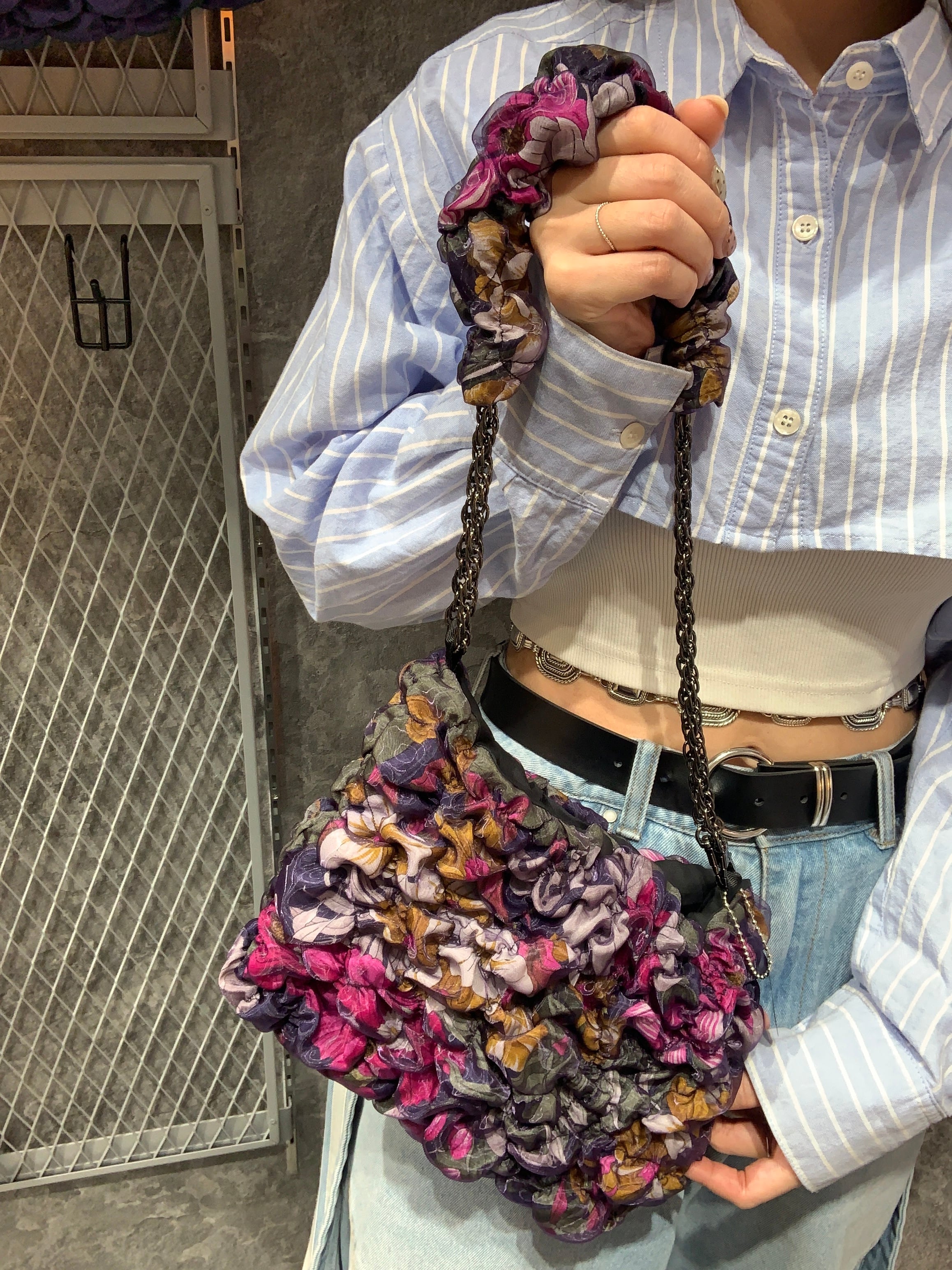シャーリングゴムによりシルエットを作り出している為、洗濯やアイロンをすると風合いが変わる可能性があります。